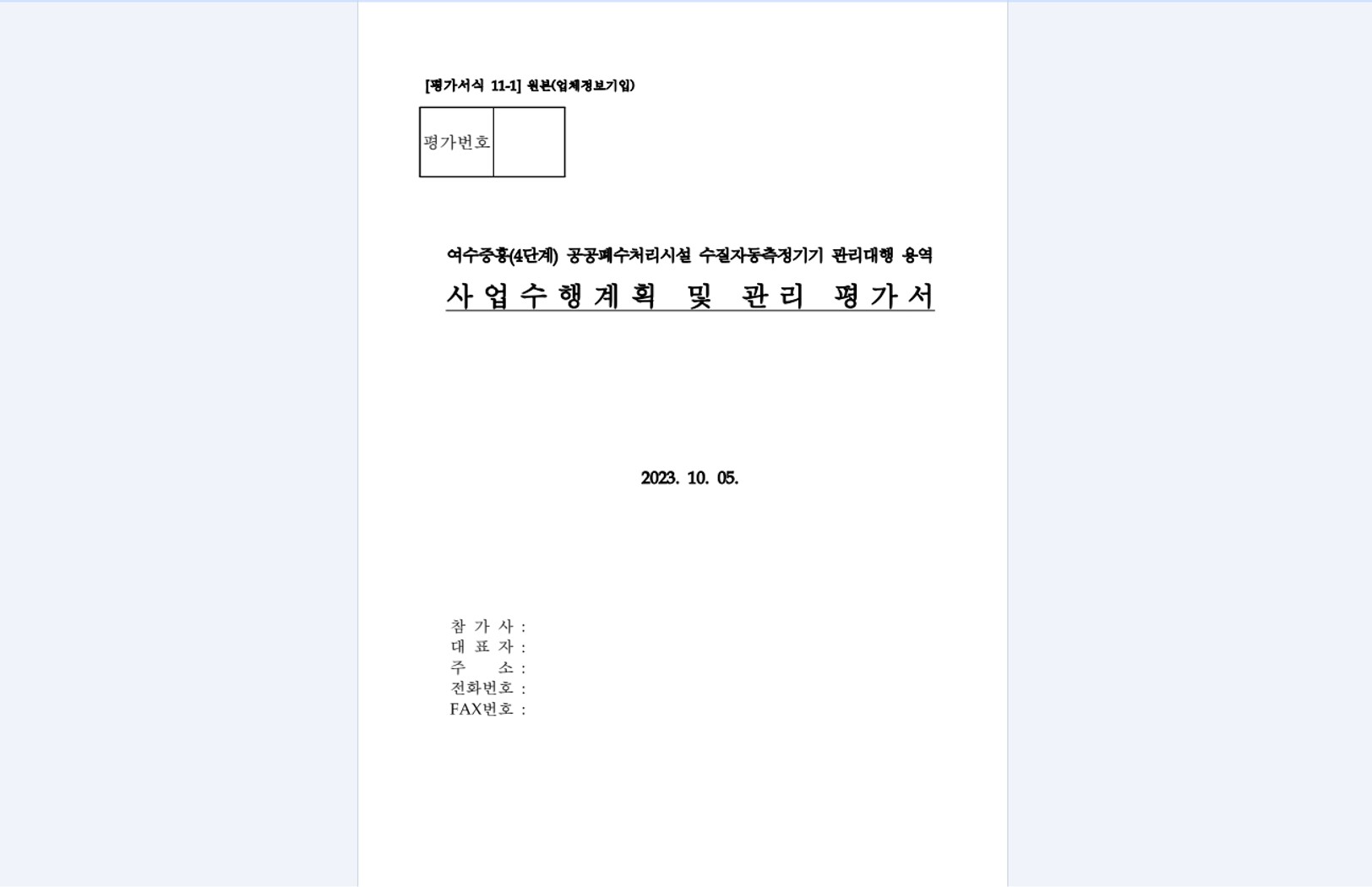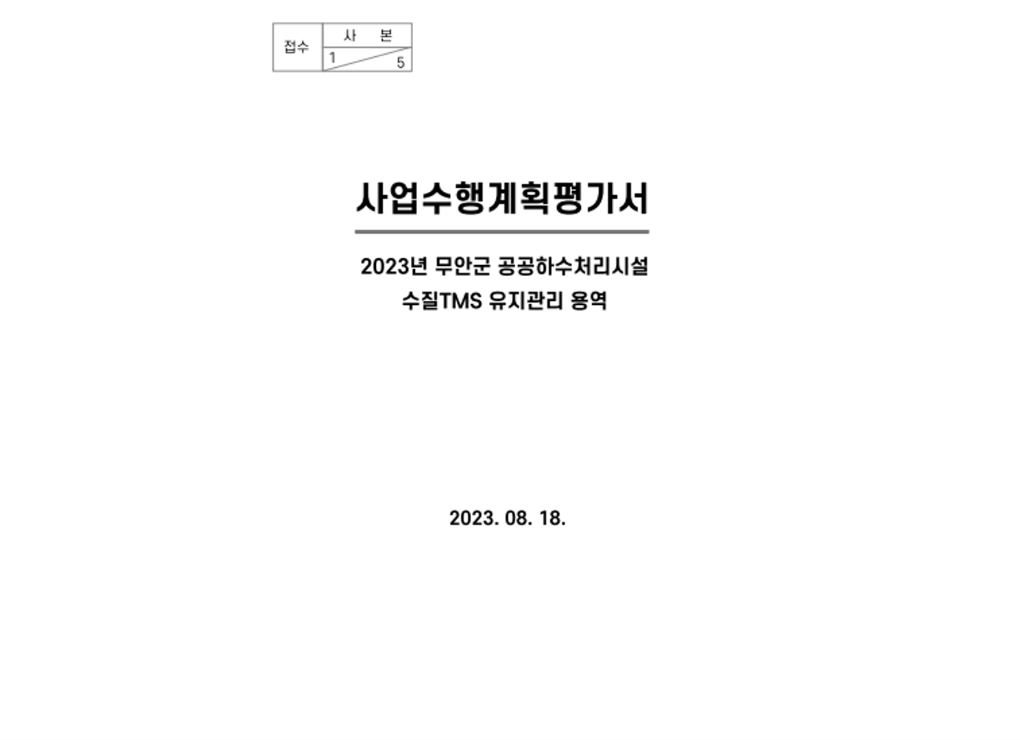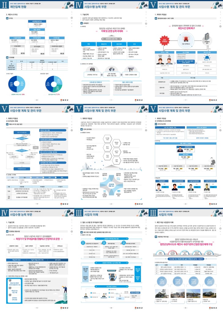 법원 법인인감 제작제안서, 성빈센트병원 통신공사, LH 행복주택 CM, 암 발파공법제안서, 양천구 생활폐기물수집운반, 성남시 생활폐기물수집운반, 도봉구 생활폐기물수집운반, 태안발전본부 수질TMS 위탁관리용역, 강릉 TMS 유지보수, 환경소음 IoT 측정망 운영 관리, 곡성군 TMS 유지보수, 광주 TMS 유지보수, 여수중흥(4단계) 공공폐수처리시설, 화순군 공공하수처리시설 ,성남시환경시설위탁운영제안서, 영섬지구 공공하수처리, 삼척시하수처리장위탁운영, 세종시 명학폐수종말처리시설 사업수행계획서, 2019년도 국가물산업클러스터 실험분석장비 구매사업, 순천시 TMS 유지보수, 양구 TMS 유지보수, 여수시 TMS 유지보수, 탄천센터 생물반응조 모니터링 시스템 구축, 도양읍 생활폐기물처리시설 민간위탁 용역, 담양군 생활폐기물 소각시설 운영·관리 민간위탁, 포항시 송라공공하수처리시설, 합천군 공공하수처리시설 수질TMS 측정기기 관리대행용역, LH 공공주택지구문화재발굴, LH안전부스-컨테이너, 신내4콤팩트시티 기술제안서, 어린이집건설시공입찰제안서, 하나금융어린이집시공제안서, 공주시자원순환센터 위탁운영, 광주문화회관 무대장치기계, 국방부-개인화기 조준경, 국방부드론입찰, 국방부-방탄복, 국방부-전술레이저표적지시기, 군부대 탈북민 교육, 군부대지붕방수공사제안서, 남동발전배열회수보일러, 대형5면가공기, 두산중공업 당진기지 시공계획서, 마창대교 도장기술제안서, 모듈러 교실 관련 혁신제품, 세원4구역 전기통신공사 발표자료, 경찰청 방검토시 방검패드, 봉화 경북형 작은정원 모듈러주택 제작·설치 구매 제안서, 영산강 나주지구 통합하천사업 타당성 및 기본계획 검토용역, 무주 반딧불 스포츠타운 기반조성 기본계획 용역, 곡물 가공장치(침지⋅증자⋅건조시스템 제작 및 설치)공사, 안성물류센터시공기술제안서, 예천군 스마트미터링 원격검침시스템 제조구매설치 기술제안서, 원주세브란스 소방공사, 인공어초 입찰제안서, 인천공항 SIGNAGE, 인천공항 가구 네오퍼스, KB골든라이프케어 광교 빌리지 인테리어 시공제안서, 인천공항 소방공사, 주민센터시공계획서, 상권 활성화 사업 운영계획서, 청소차 입찰제안서, 카자흐스탄공장건설 기술제안서, 쿠팡 업체등록 기술제안서, 화장장환경설비, 현대삼호 영흥발전본부 옥내저탄설비 설치조건부 제작구매, 영구지적기록물 전산화 및 활용체계 구축 사업, 통영시 건축물카드대장 DB 구축사업 , 부산강서 영구지적기록물통합관리시스템 구축 사업, 대구광역시 수성구 지적관련 영구보존기록물 전산시스템 구축 용역, 울주군 건출물카드DB구축사업제안서, 천안시 중요기록물(동남구 건축물카드대장) 전산화사업, 영월군 지적기록물 전산화사업, 광주북구 드론행정정보시스템 구축, 청주시 드론 항공영상 행정지원 시스템 구축 용역, 시설공사(평해블록구축) GIS DB 구축 용역, 가양대교 영상CCTV 입찰제안서, 청주시 스마트 관망감시 및 유지관리시스템, 한국도로공사 영상분석시스템(스마트 CCTV)구매(설치포함), 재난영상통합관제센터, 김포시 방범CCTV 및 통합관제시스템 유지관리, 서울청국도ITS, 양천구CCTV, (하천환경 모니터링)드론 행정지원시스템 구축사업, 부산광역시방범용1단계제안서, 산업은행CCTV 출입통제시스템, 파주시ITS, 재난영상관제센터 구축, 창원시ITS 스마트주차장, 무선·영상시스템 및 소방관서 통신장비 유지관리 용역, 구미시지능형교통체계(ITS)구축사업, 영흥발전본부5,6호기 스마트 재난관리시스템 구축, 김포시방범CCTV및통합관제시스템유지보수용역, 서초25시센터 주요설비 및 CCTV 통합유지보수 용역, 구미ITS, 군산시ITS교통신호시스템고도화사업, 각급 법원 전산장비 운영 및 유지보수 사업, 공군기지 네트워크 개선사업제안서, 영상분석시스템(스마트 CCTV)구매(설치포함), U-CITY, 진주 U-city 구축사업, 대전도안지구 U-CITY, 전북전주 BIS, BIS, BMS 통합시스템, 향남혁신도시, 대구도시철도 1호선, 송산 U-CITY, 시흥시 UTIS, 송산우정혁신도시 U-CITY, 인천청라 U-CITY 구축, 인도네시아 철도관련, 대구지하철 ICT, 수자원공사 스마트미터링 원격검침시스템 제조구매설치, 수자원공사 금강유역 보 및 지방상수도 시설 점검정비용역, 인공지능수도시설 기술및기능, 토지적성평가및재해취약성분석용역, 개인화기 조준경, 전술레이저표적지시기, 재난대응 재해위험지역 조기경보, 드론실증사업, 폐수처리장, 건축물카드대장시스템, 무대장치기계, 방탄복, 이사용역, 생활폐기물, 도로공사 교통량조사시스템유지보수, 가스저장탱크시공계획서, 모듈러 교실 관련 혁신제품, 방검토시, 방검패드, 코레일 TFM, 수학학습플랫폼 메타버스, 영구지적기록물 전산화 GIS, 화력발전소 옥내저탄설비 시공계획서, 주민센터시공계획서, 편의시설 입찰제안서, 하수처리장 TMS 유지보수, 화장장화장로설치공사, 한전 전기차충전소유지보수, 합천하수처리장 TMS, 공항 전기감리, 아파트 전기감리, 동탄주차타워감리, LH감리, 우체국공사감리, BTL 병영시설 운영계획서, 건설공법제안서, 공항공사 소방공사제안서, 국방부드론입찰, 대형5면가공기, 군부대